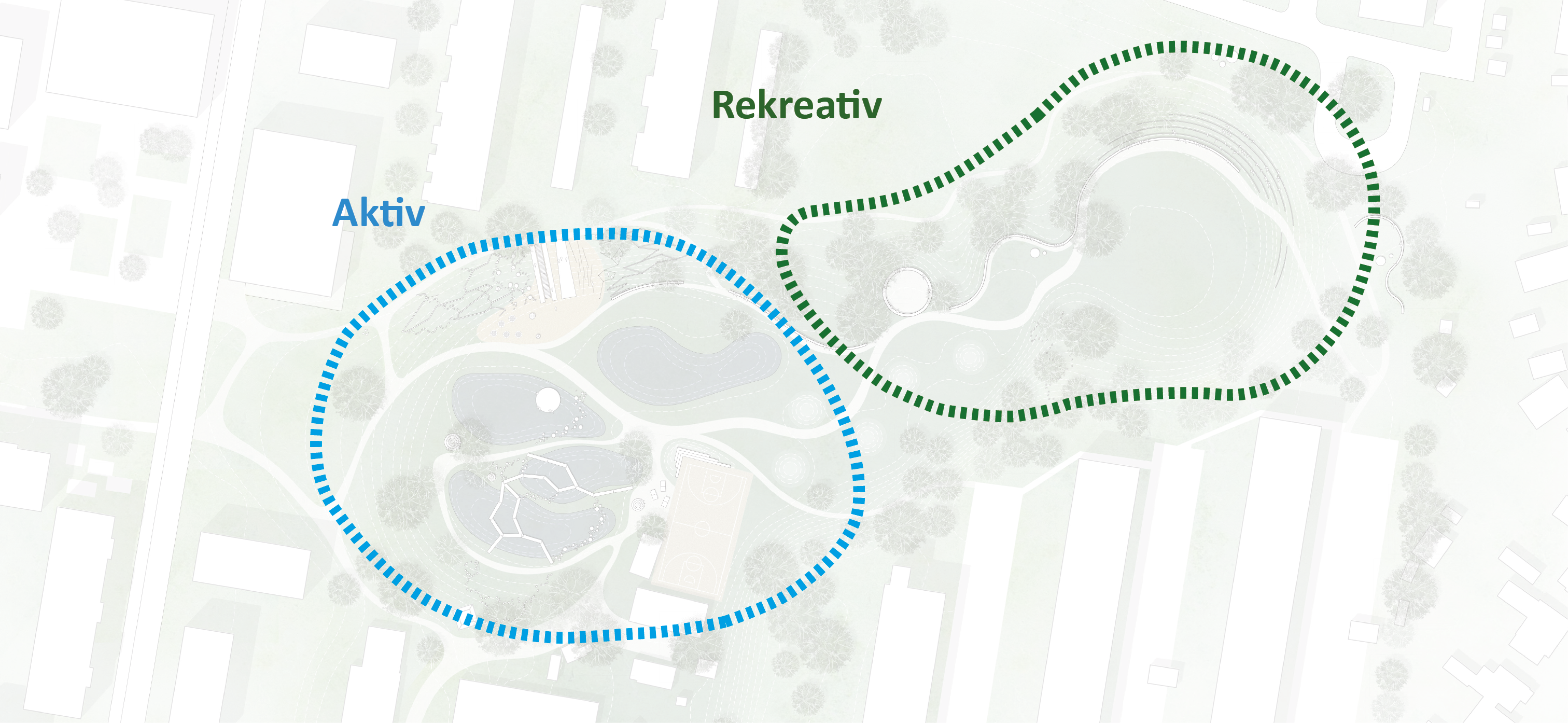 - Generelt opgraderes parkens inventar og etableres "øer" til ophold på hele nordsiden af parken,