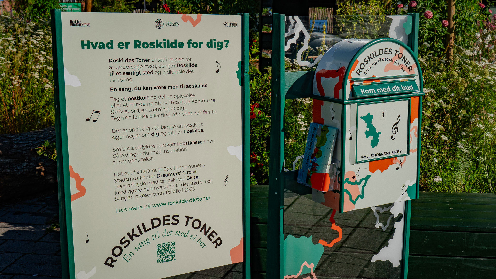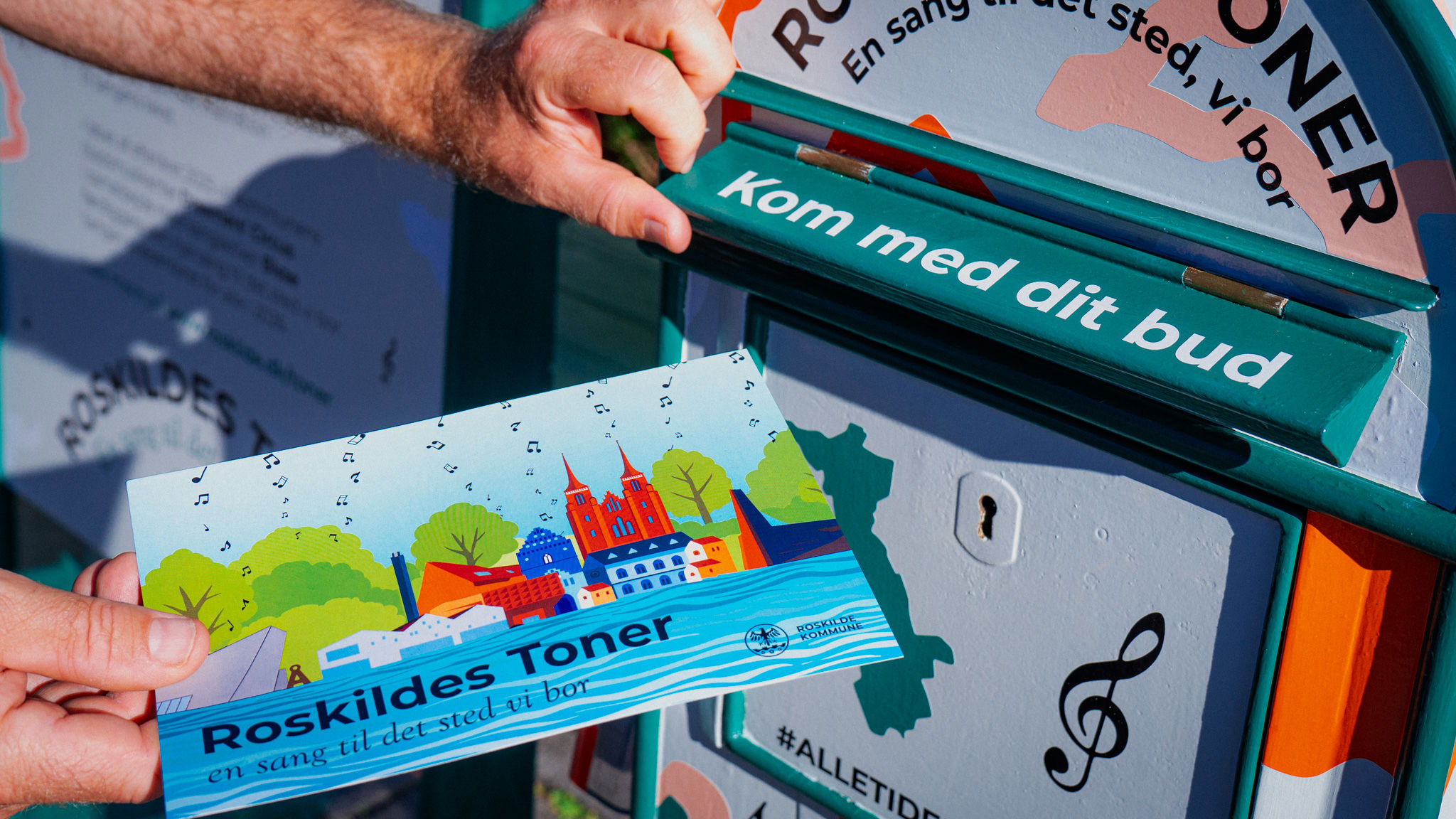 I løbet af august og september 2025 rejser Roskilde Toners postkasse rundt i kommunen. Her kan du tage et postkort og dele noget fra dit liv i Roskilde Kommune.