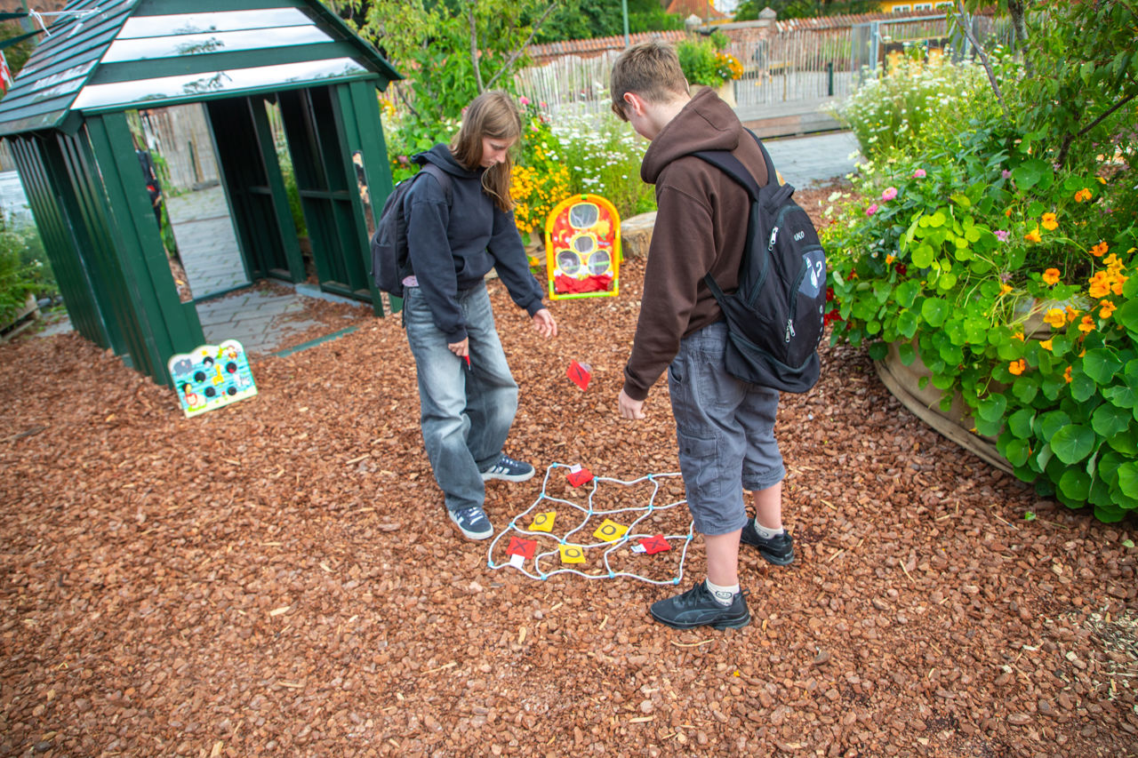 Tre spejlpavillioner placeres i midten af det grønne centrum og danner rammen om et større opholdsareal, med langborde og plads til leg og bevægelse. Spejlpavillonerne, der er bygget af FGU-elever, fungerer både som et stort legehus, en informationspavillon med diverse informationspjecer og som aktivitetspavillon hvor der stilles forskellige udendørsaktiviteter til rådighed.