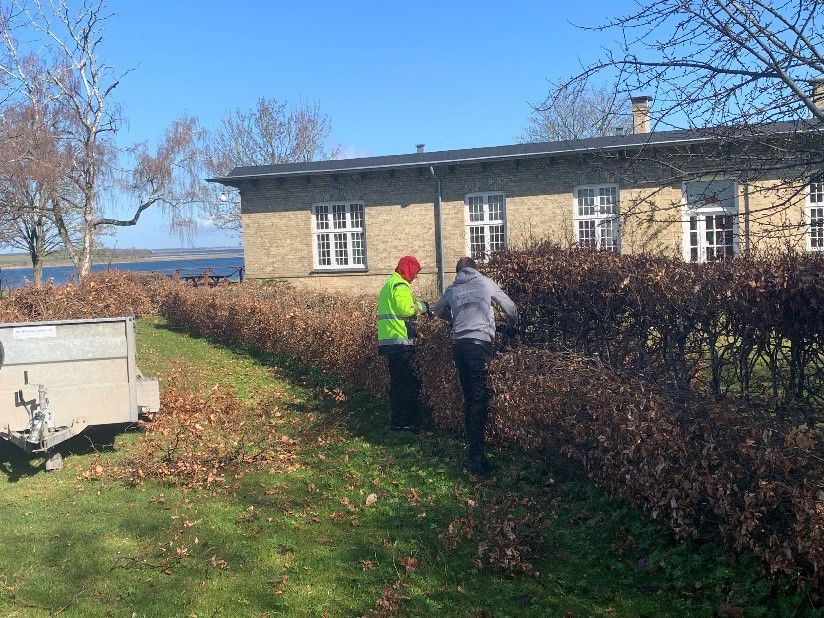 - Ordner grønne områder, slår græs, klipper hæk mm.
