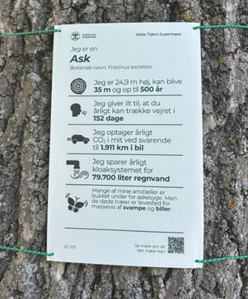 Informationerne på skiltene er bare et udvalg af de mange værdifulde funktioner og bidrag (økosystemtjenester), som træer, især de store af slagsen, yder.