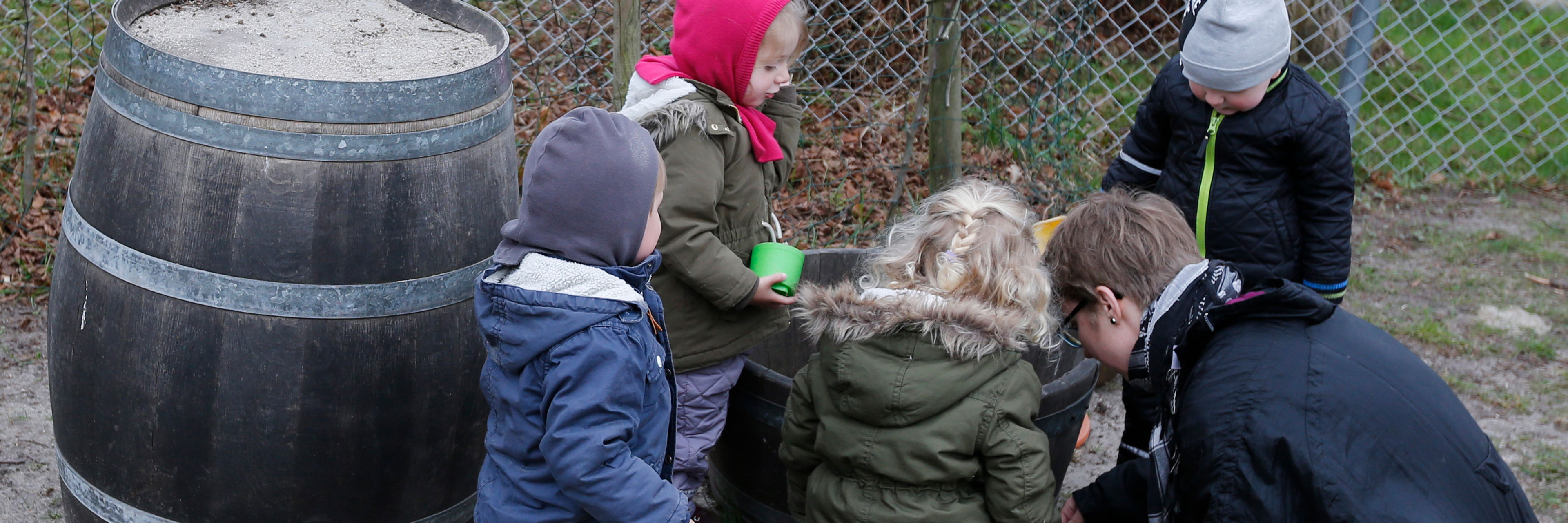 Den store legeplads er primært målrettet børnehavebørnene, men ind i mellem er der også besøg af børnene fra vuggestuen. Ligesom vuggestuen også benytter værkstedet.