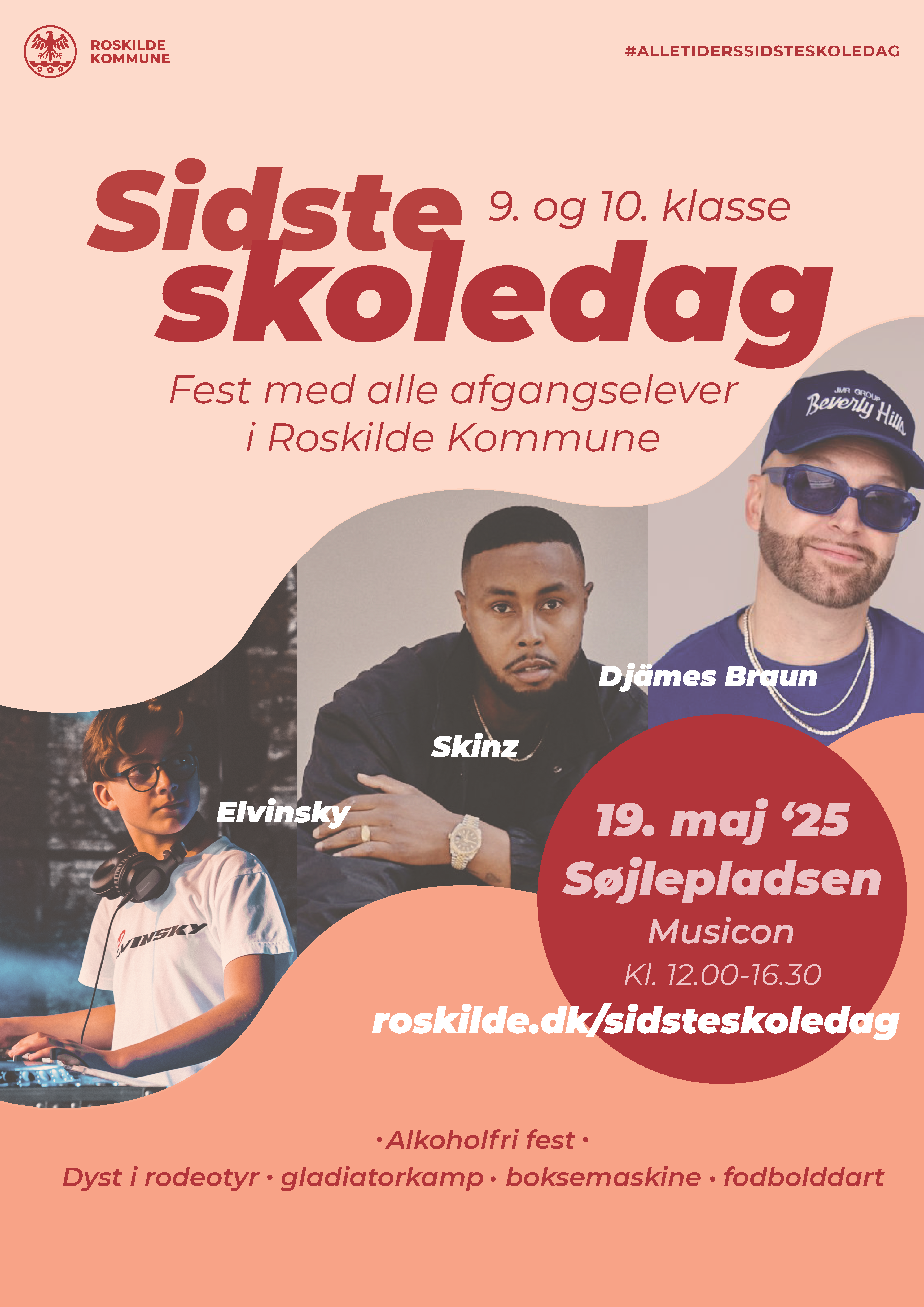 Sidste skoledag er mandag den 19. maj 2025. Alle afgangselever i Roskilde er inviteret til at fejre den store dag til en fælles alkoholfri fest på Musicon.